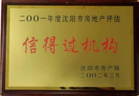 | 2010年被评为“2009年度辽宁省房地产评估单位三十强” | 获得2005年度沈阳市房产局房地产估价“信得过机构”殊荣 |